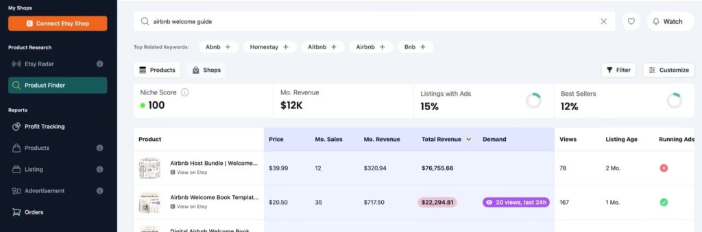 This Airbnb welcome guide template has already made $22,000 in sales. Interestingly, another related product from the same shop has made an additional $15,000. Combined, that’s a solid chunk of income from just two related products.