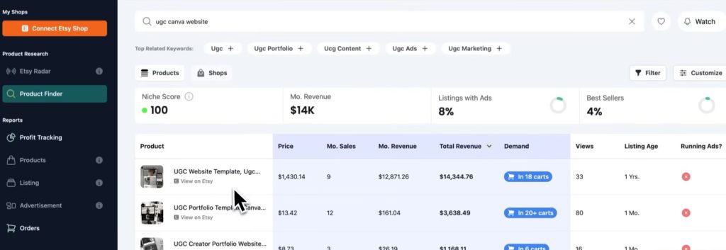 This one template made specifically for UGC and content creators — made over $14,000. The kicker? It’s priced at $1,430.