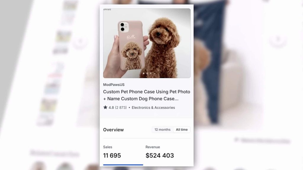 One of the most popular print-on-demand niches on Etsy is dogs. There’s this custom phone case that, according to a Etsy research app, has made over $500,000. And that’s just one product in this niche—there are tons of others that have made hundreds of thousands of dollars each.