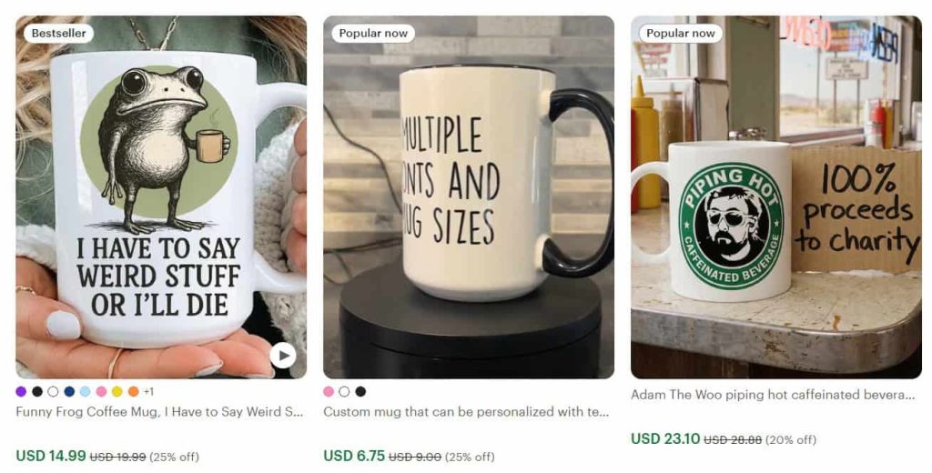 They’ll come to Etsy, see that dog dad mugs are popular and selling well, then think, “I know, I’ll create my own dog dad mug.” And guess what? That boring, unoriginal design flops. Nobody buys it.