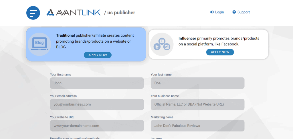When you go to sign up, a typical affiliate program application is really just basic information: